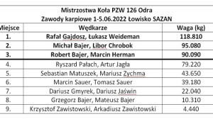 W dniu 1-5.06.2022 odbyły się karpiowe zawody wędkarskie - Mistrz Koła PZW 126 Odra na łowisku Sazan.