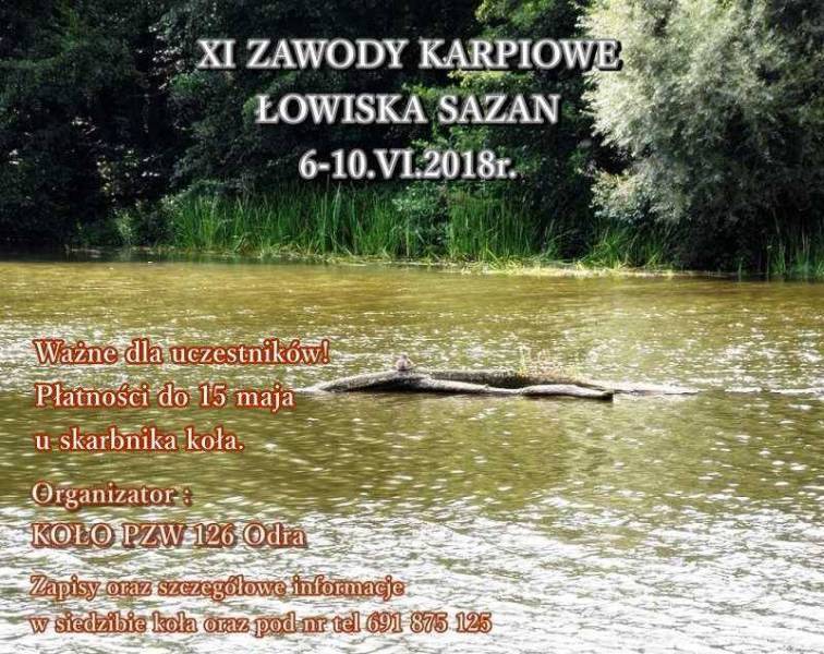 ZAPRASZAMY NA ZAWODY - ŻYCZYMY UDANEJ ZABAWY ORGANIZATOR CYPRINIADY SAZAN 2019